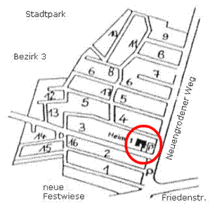 Zu unserem Vereinsheim 1 kommen Sie über den Neuengrodener Weg im Bezirk 2.